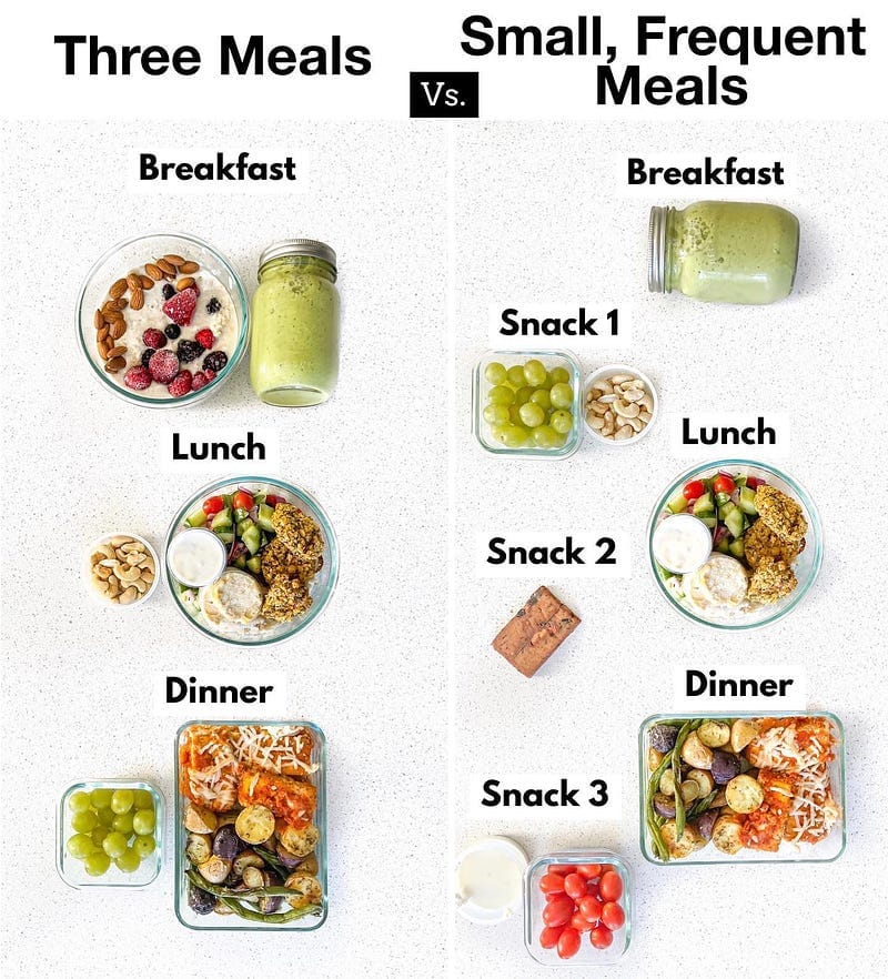 Some folks say three big meals are the way to go, while others prefer snacking on five smaller ones.
